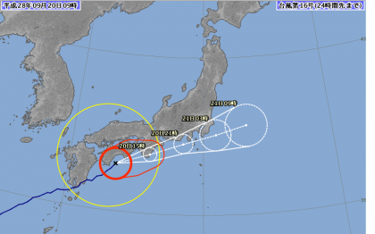 台風16号が近畿地方に近づいています。