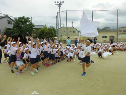 入場の練習に始り,開会式,閉会式の流れを知り,準備体操の全校ダンスも踊りました。そして応援合戦をして,最後はつな引きの練習と盛りだくさん。