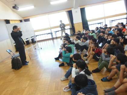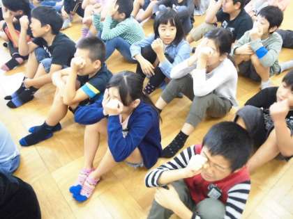 4年生は,国語科「手と心で読む」で学習した視覚障害について,総合でも学習しました。