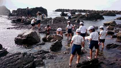 少しくらい濡れてもおかまいなしにどんどん水に入って観察しています。