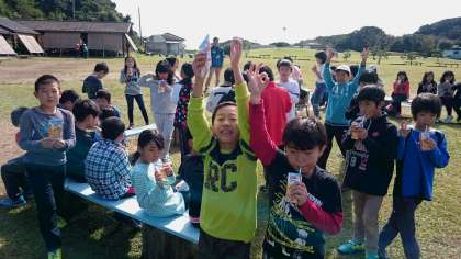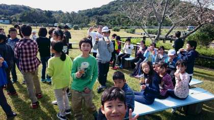 たっぷり磯観察して早く帰って来たので、芝生広場でジュースタイムです。
