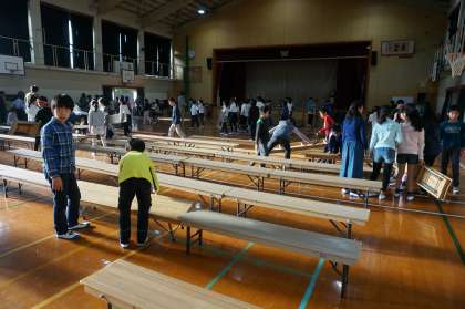 全校合唱の練習の後,リハーサルも無事に終わりました。午後には6年生と教職員で会場準備や体育館周りの清掃をし,明日を待つばかりになりました。