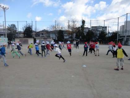 寒い日にでしたが,子ども達は元気いっぱい,赤白に分かれて戦いました。