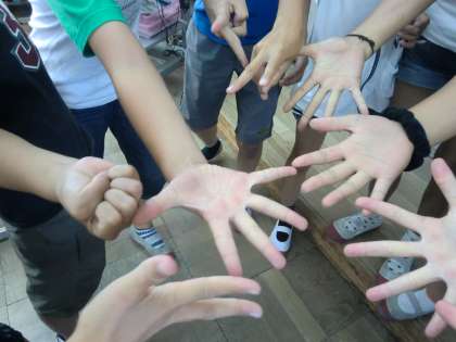 一つ余った梨をめぐって,大じゃんけん大会が行われました。「じゃんけん!ほいっ!!」とみんな必死。