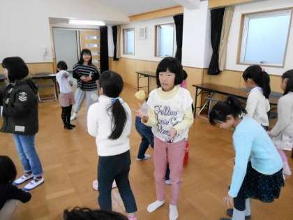 中ではだるま落とし・お手玉・百人一首・福笑い。