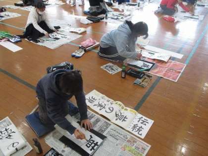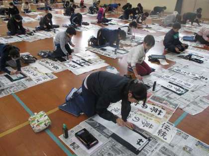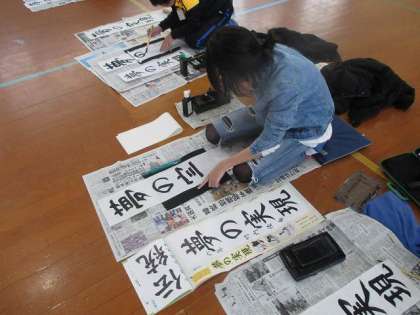 心を落ち着かせながら,一画一画丁寧に書いています。
