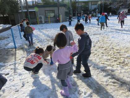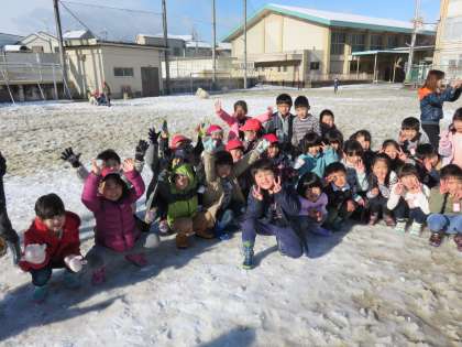 1時間目,1学年みんなで運動場に行き,生活科「ふゆも げんきに」の学習を兼ねて雪遊びをしました。雪合戦や雪だるまづくりを楽しみました。