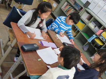 今週は,「おすすめの品物」を宣伝するためのチラシを書いたり,看板を作ったり,実際に品物カードを並べたりして,開店準備は順調に進んでいます。