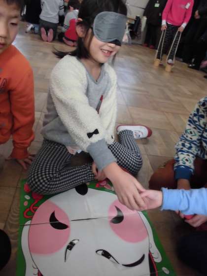 2時間目の生活科の授業では,「ふゆもげんきに」でお正月遊びを楽しみました。ぼうずめくりやだるま落とし,福笑いにお手玉。短い時間でしたがそれぞれ楽しんでいました。次は,外で遊ぶ羽子板にも挑戦してみたいです。
