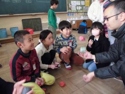 途中,保護者の方が飛び入り参加してくださり,子どもたちにお手玉の仕方を教えてくれました。嬉しかったね。