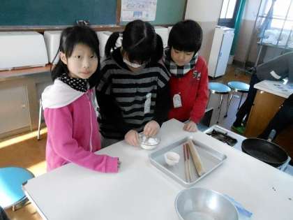 仕上げに砂糖を入れました。早く食べたいという声がたくさん聞かれました。