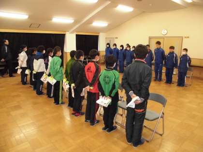 2月12日(日)に行われる,大文字駅伝に向けて,桂川中学校の卒業生の生徒たちが激励に来てくれました。あこがれの先輩に声をかけていただき,子どもたちも気持ちが高ぶっていました。