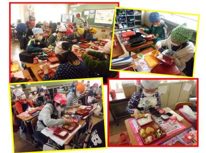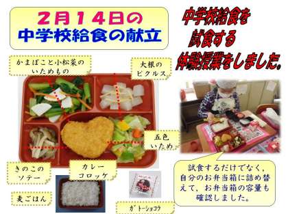2月14日に6年生の教室では,中学校に向けて「弁当大作戦」と題して,中学校給食を体験する授業が各クラスで行われました。