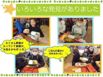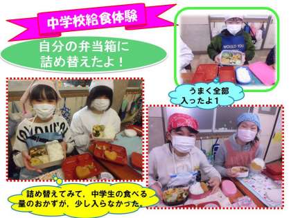 中学校給食を自分の弁当箱に詰め替えてみると,いろいろな発見がありました。