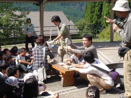 初めに山の家の先生に 火おこしのやり方を教えていただきました。