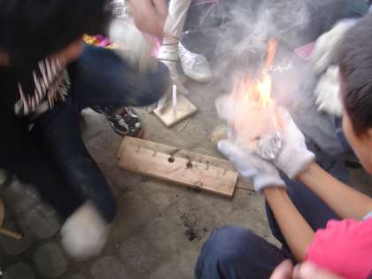 午後からの活動は,火おこしを行いました。