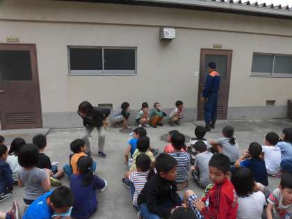 避難訓練の後で,3年生はけむり体験をさせていただきました。火事によってけむりが充満した時を想定して低い姿勢で移動することを教わりました。火事の怖さも知ることができ,とても貴重な経験をすることができました。