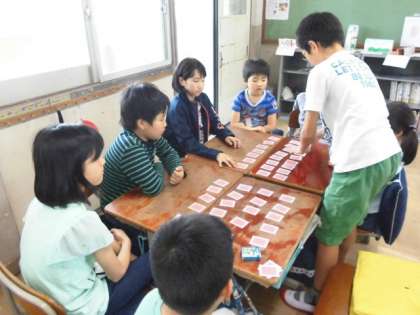 たてわりあそびの顔合せがありました。1年生から,6年生までのたてわり班です。来月から,みんなで一緒に楽しく遊ぼうね。