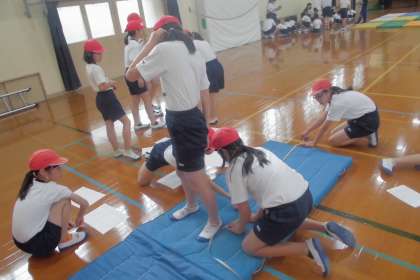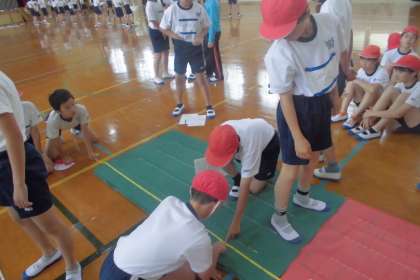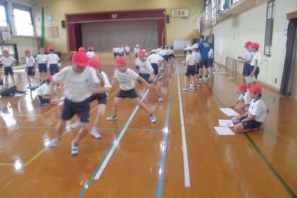 スポーツテストをしました。立ち幅跳びや反復横跳びなど6つの種目に挑戦しました。ペアで数え合ったり,グループで測り合ったりして,みんなで励まし合いながら取り組むことができました。