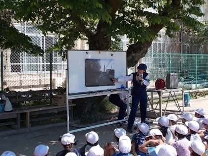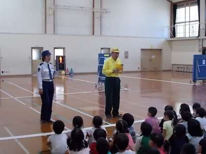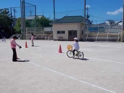 青空のもと,交通安全教室が行われました。桂東自治連合会の小石会長や西京警察署の警察官の方々,桂東地域女性会の方々にご協力いただき,交通安全の大切さについて学びました。今日の学習を生かし,これからも安全に登下校してもらいたいです。