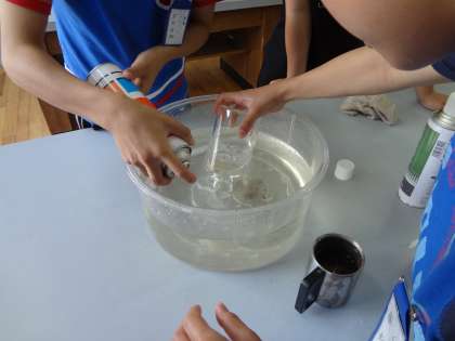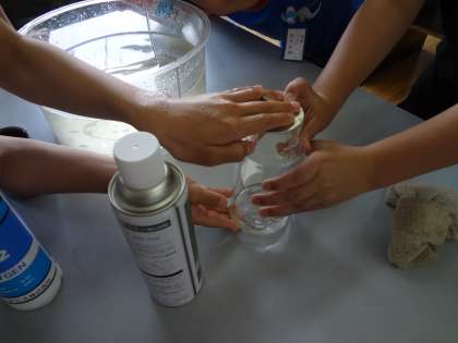 空気中の,ちっ素,酸素,二酸化炭素は物を燃やす働きがあるのかを実験しました。班で協力し実験することができました。