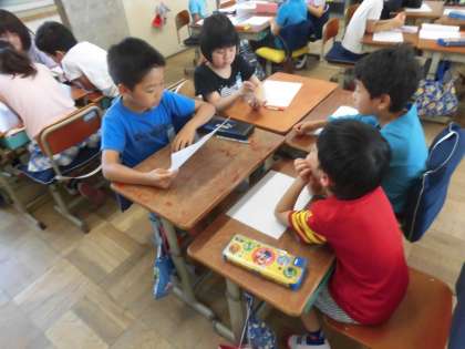 国語科の「よい聞き手になろう」の学習では,グループで友達に伝えたいことを話し合いました。聞き手は,話の中心に気を付けて聞き取っていました。今後の学習でもよい聞き手となってほしいと思います。