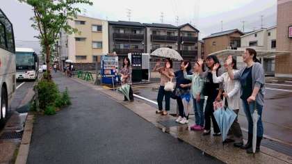 保護者の皆さんに見送られて、8時45分に桂川街道を出発しました。