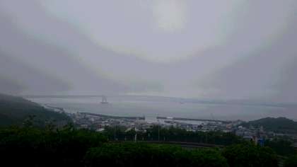 淡路サービスエリアです。明石海峡大橋の全景が見えるのですが、上部は雲の中でした。