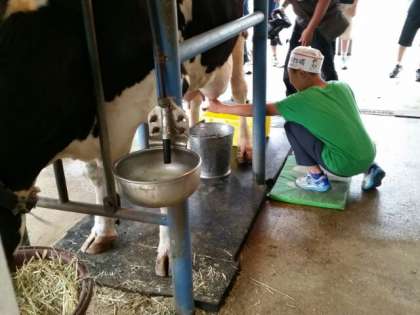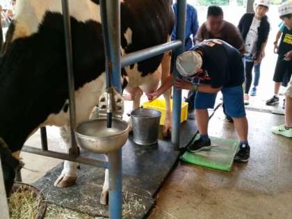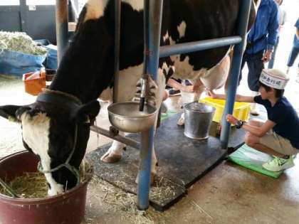 へっぴり腰でする子、堂々と落ち着いてする子等いろいろ。牛さん、失礼します。