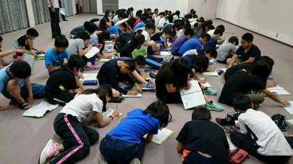 最後にリーダー会をして、全体の振り返りと明日の予定とめあてを確認しました。