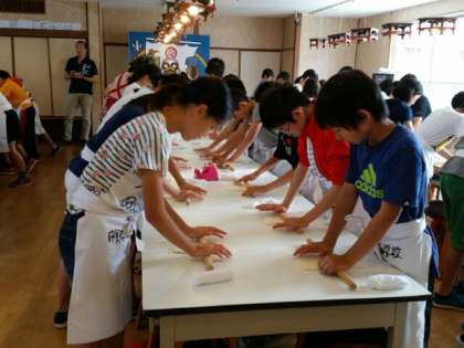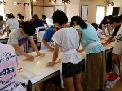 うどんの生地をのばします