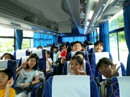 帰り道は楽しいバスの旅。疲れて寝ている人もいますが、みんな元気です。