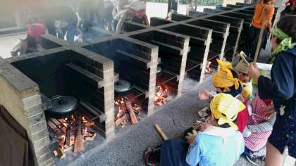 しかし、かまど係の努力で美味しいすき焼き風煮ができました。