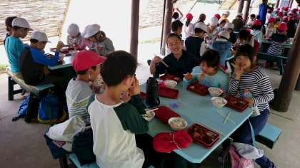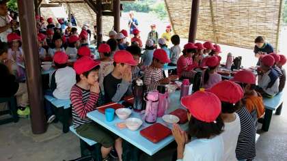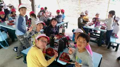 昼食はハンバーグです。しっかり食べて午後の活動もガンバりましょう❗