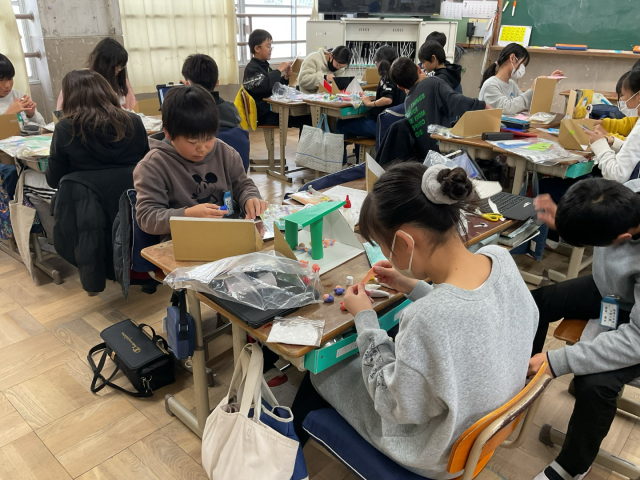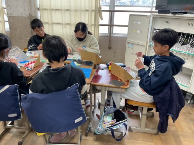図工の学習で鏡を使った工作に挑戦しています。