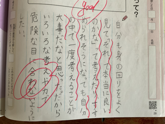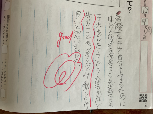 子ども達のふり返りでは、「自分で良いか悪いかの物事を考えることが大切」「先のことまで想像して行動する」