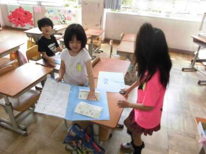 今日は,「わたしのすきなスイミー」という学習の成果を読み合い,書き方のよいところを見つけ合って交流しました。