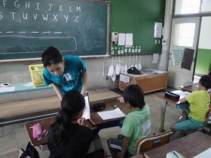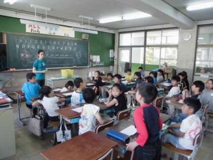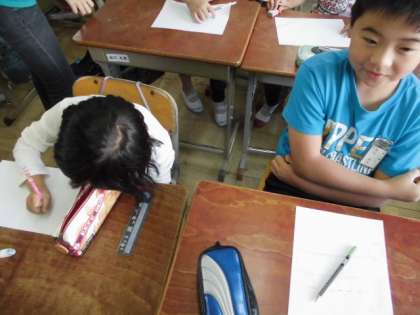 今日は4年1組にALTのマリダ先生が来てくれました!ペアでお互いにお題を考え,アルファベットでお互いのお題を当てるゲームを一緒にしました。子どもたちはとても喜びながら,ローマ字やアルファベット,英単語に親しむことができました。