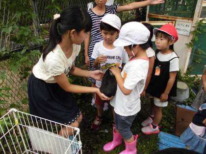 子どもたちは「ふわふわしてる!」「あったかい!」「えさを食べる時って,けっこう力が強いんだな。」などと話しており,たくさんの気づきがあったようでした。飼育委員さん,ありがとう!