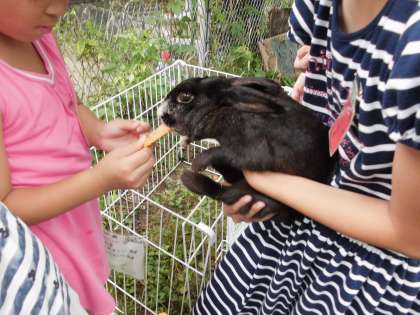 飼育委員のお兄さん、お姉さんに教えてもらいながら、うさぎにさわったりえさをあげたりしました。1年生の小さな手でやさしくそっと抱っこをしている姿はとても微笑ましかったです。