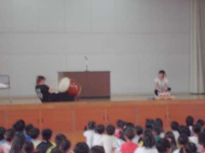永年,大枝小学校で「和太鼓サークル」を指導して頂いている前川由美先生が学校ボランティア表彰を受けられました。和太鼓サークルの初めのころの事や太鼓のよさ,面白さをお話しくださいました。最後は校長先生のしめ太鼓に合わせて見事な演奏を披露してくださいました。