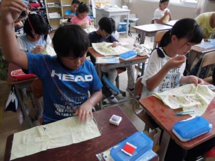 家庭科では,初めてのさいほう学習に取り組んでいます。糸通しや玉結び,玉止めなどを少しずつマスターしている5年生。さいほうの基本を身に付けたことを生かして「いちごのマスコット」を作っています。ひと針ひと針に心をこめてぬって,思い出に残る作品を作りたいと思います。