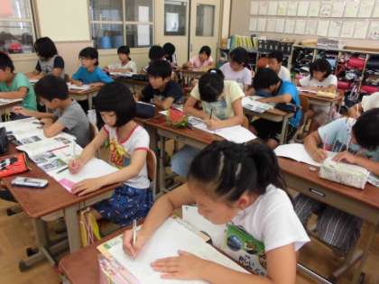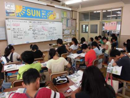 夏休み目前の暑い教室ですが,45分間集中して学習に取り組んでいます。
