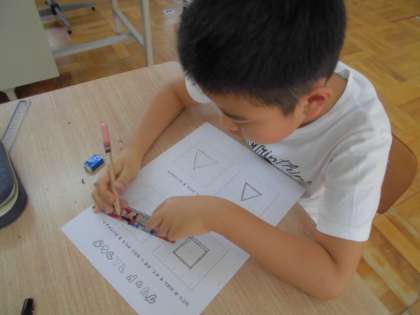 まっすぐに引けるようになって楽しくなったのか,プリントの裏まで線を引いていました。