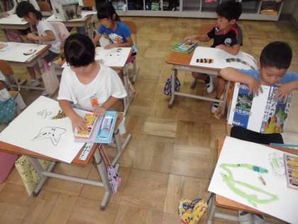 下書きを終え,画用紙に描き始めました。