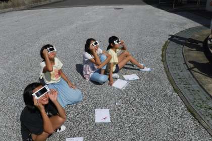 理科では「月と太陽」の学習をしています。月が輝いているのは太陽に関係があるのではないかと考えた子どもたち。今日は実際に月と太陽の位置を観察し,月が輝いてる側に太陽があるのかを確かめました。