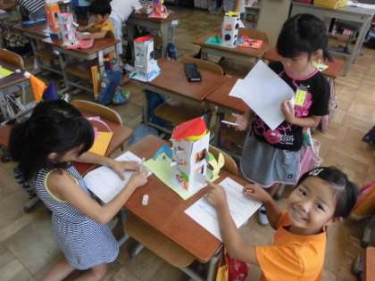 「まどが,ちょうちょの形で,はねのところが2つひらいているのがおもしろい。」など,