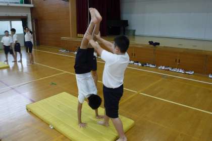 6年生にとって最後となる運動会!21日の本番に向け練習がスタートしています。今日は組体操の練習で,一人技や二人技,クラスみんなで作る技などにチャレンジしました。補助倒立やサボテンなど,これから完成度をあげていきます!