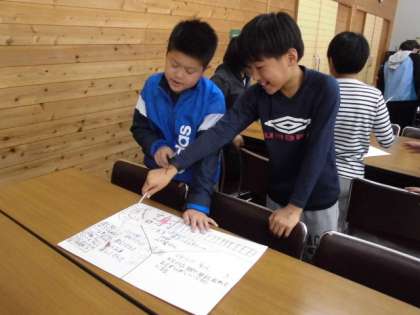 最後の活動は山の家ポスターセッション大会です。みんなでキーワードをもとに山の家の成果と課題を話し合いました。午後2時ごろ山の家出発の予定です。