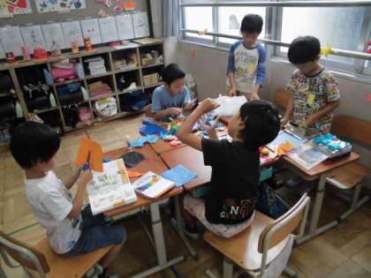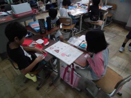 グループで協力してお楽しみ会に向けての準備をしています。